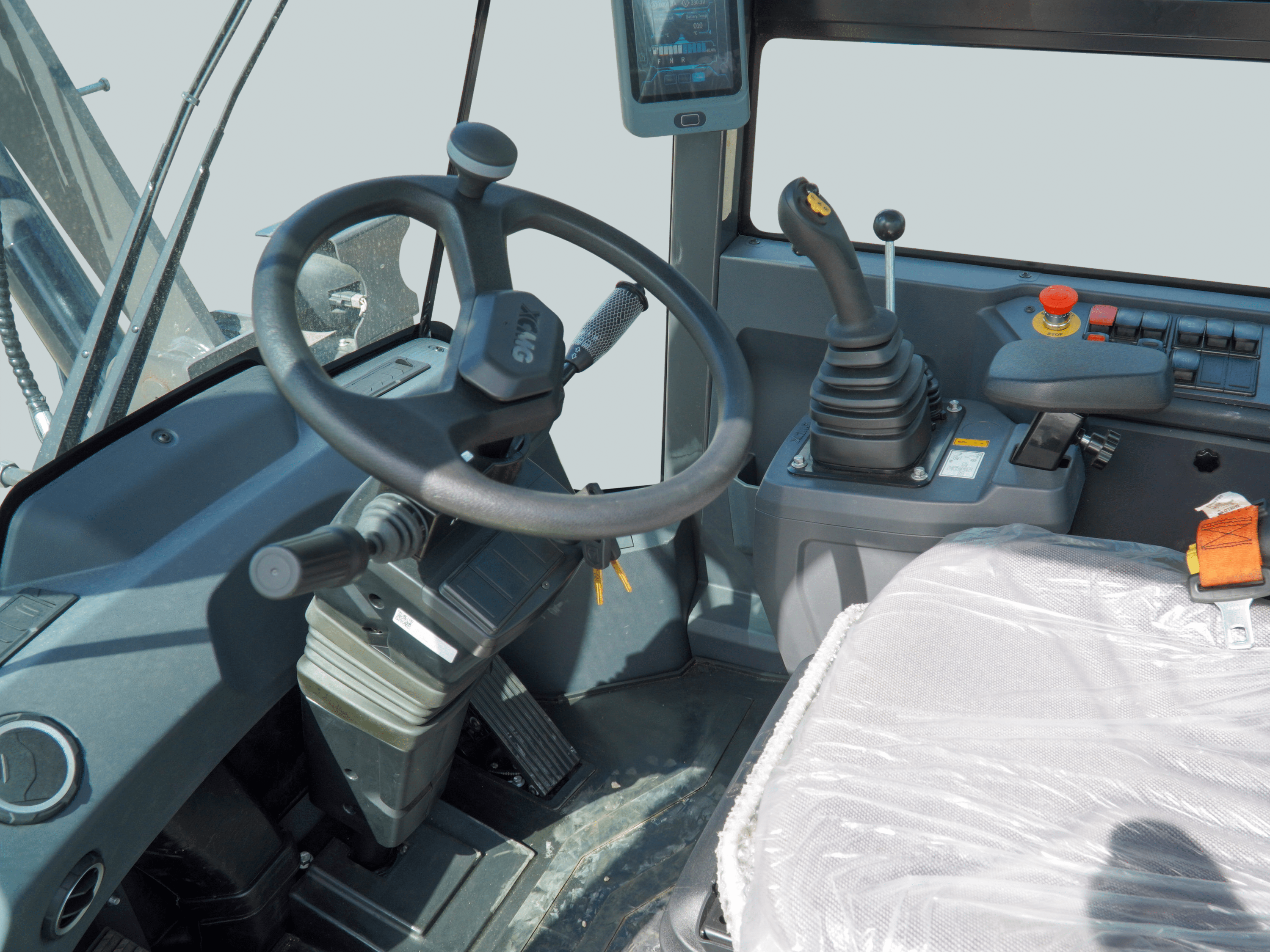 This is an electric compact wheel loader with a payload of 1.8 tonnes and a bucket capacity of 1 m³. It weighs about 6.7 tonnes and has a maximum unloading height of 2.67 metres. Thanks to its electric drive, the XC918-EV is very quiet, making it suitable for use in environmentally sensitive areas. The compact design with short turning radius enables flexible manoeuvring on narrow roads. The ergonomically designed cab offers panoramic visibility, low vibration levels and a protective frame, allowing the operator to work comfortably and safely.